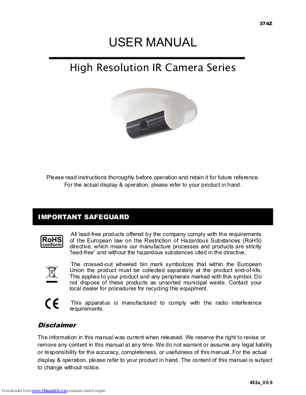 Current Consumption (±10%) 60mA (IR OFF), 160mA (IR ON)
