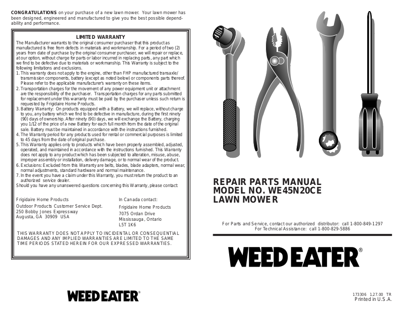ROTARY LAWN MOWER - - MODEL NO. WE45N20CE