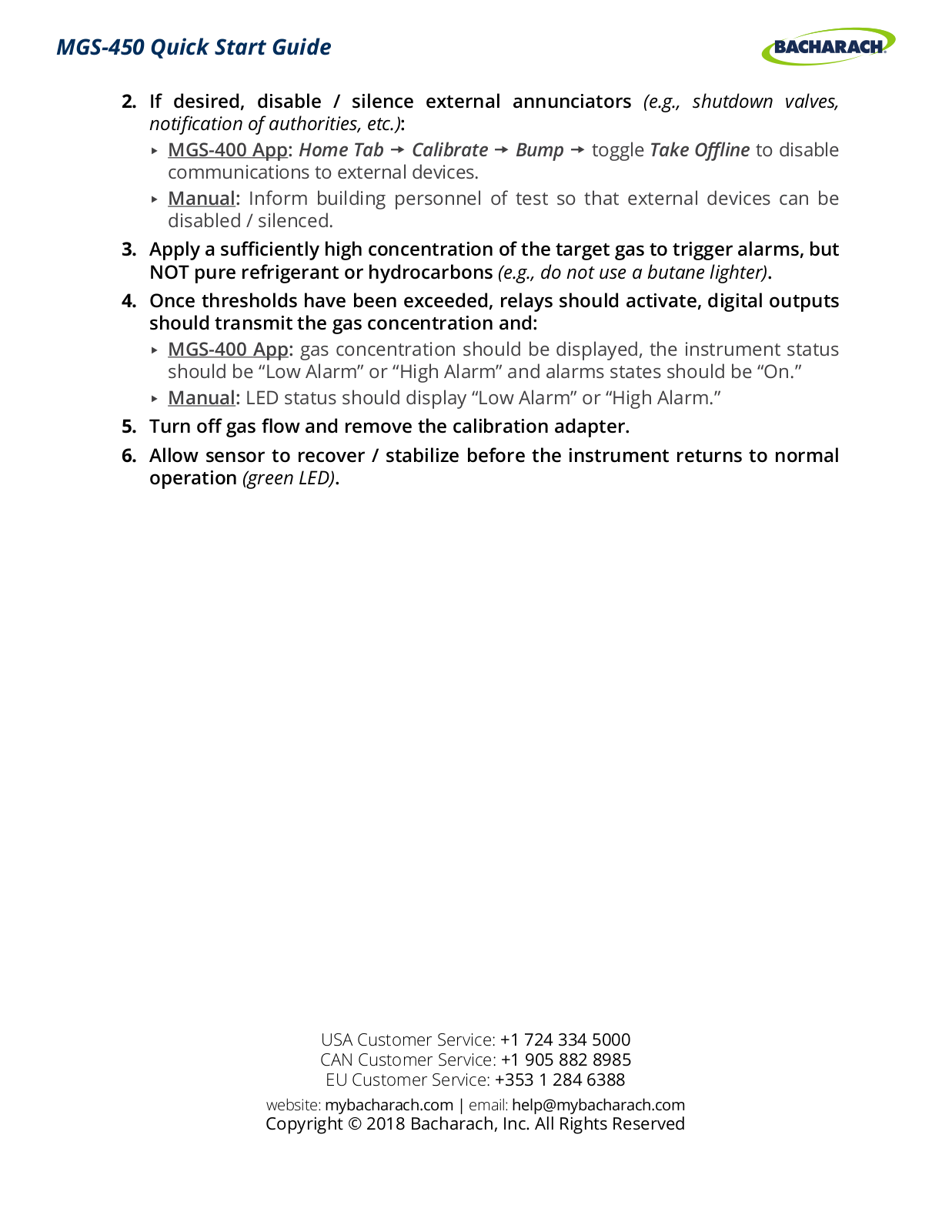 Bacharach MGS-450 Quick Start Guide