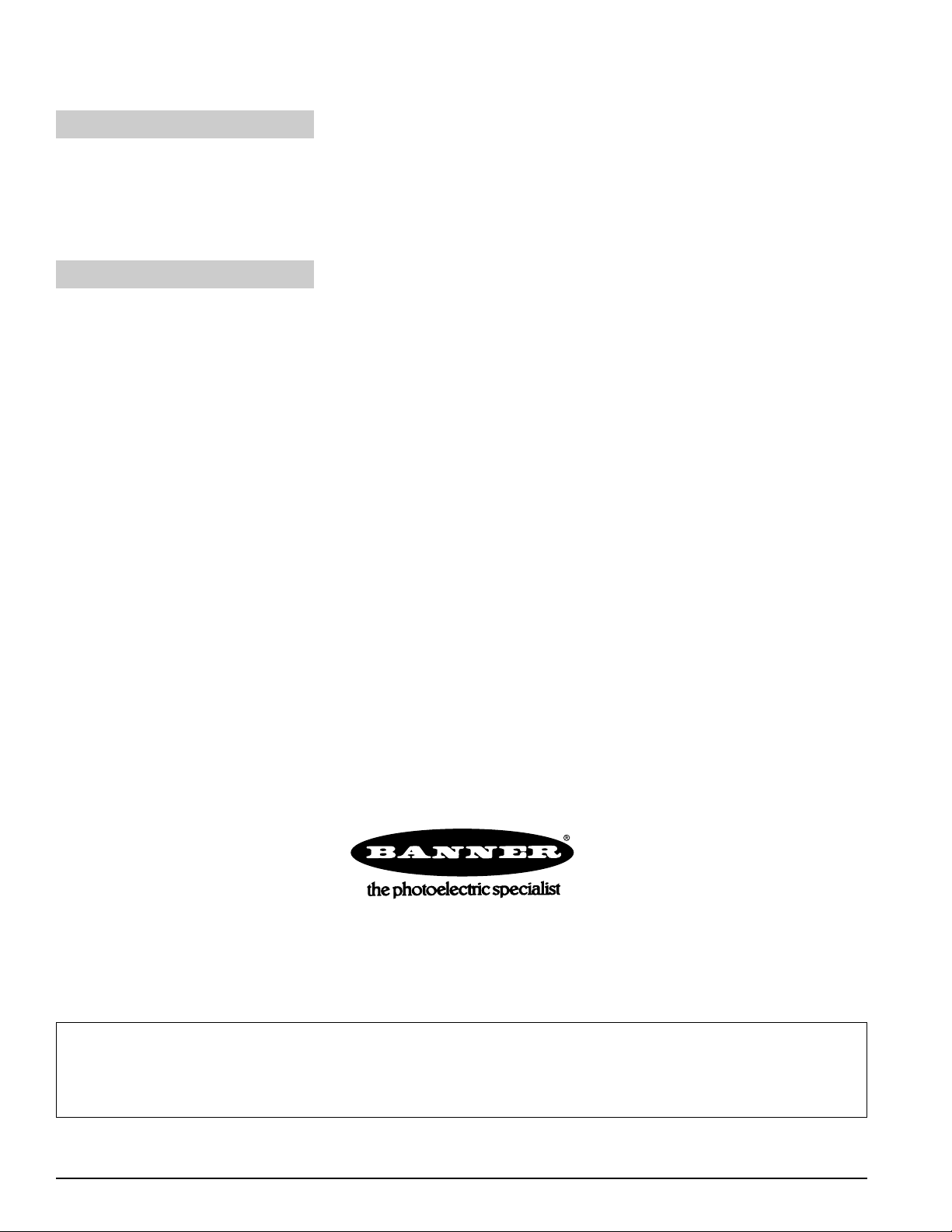 WARRANTY: Banner Engineering Corporation warrants it products to be free from defects for one year. Banner