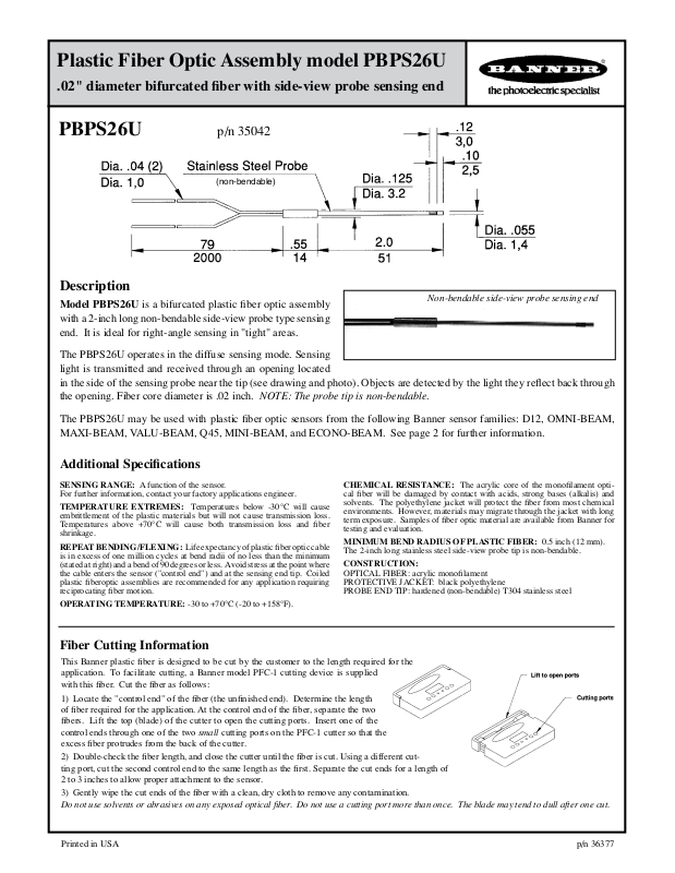 application. To facilitate cutting, a Banner model PFC-1 cutting device is supplied