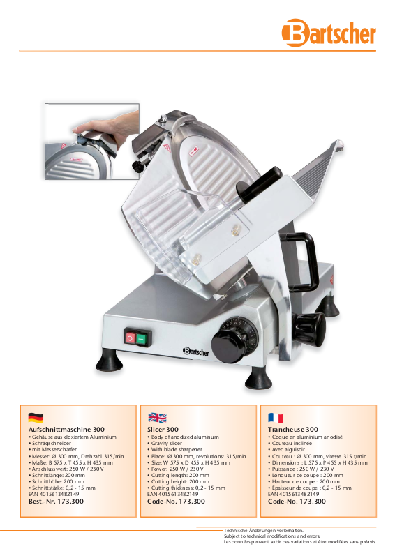 • Messer: Ø 300 mm, Drehzahl 315/min