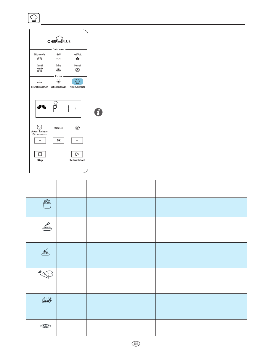 tung unterschiedlicher Mikrowellengeräte. Für diese Mikrowelle empfehlen wir Folgendes: