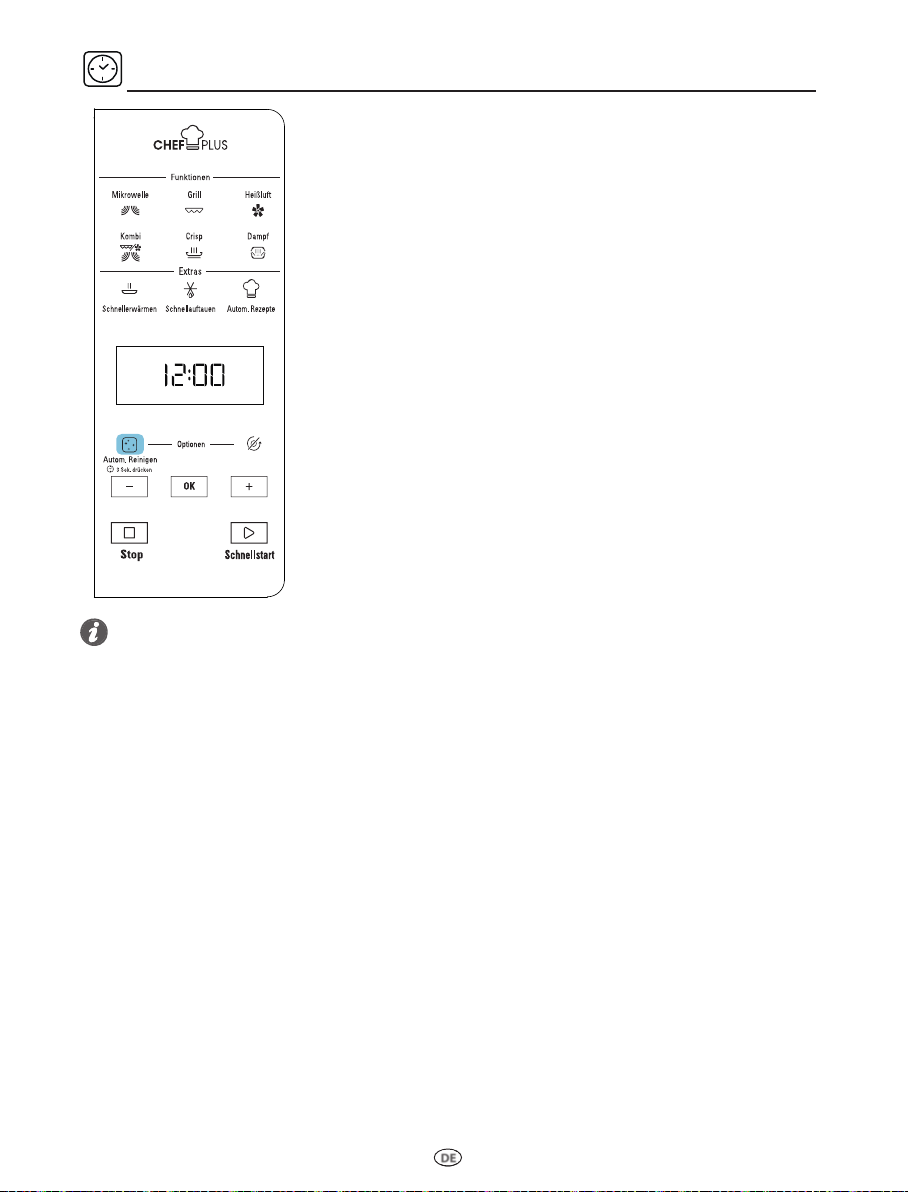 Drücken Sie die Taste “Autom. Reinigen”, wird die Dauer des