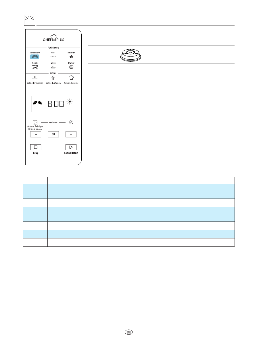 dreht, kann das Drehen des Glasdrehtellers mit der Funktion “Drehtellerstopp” angehalten werden.