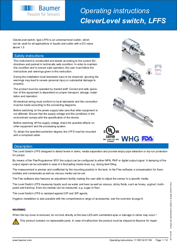 www.baumer.com Operating instructions: 11109132 07 EN Page 1 / 12