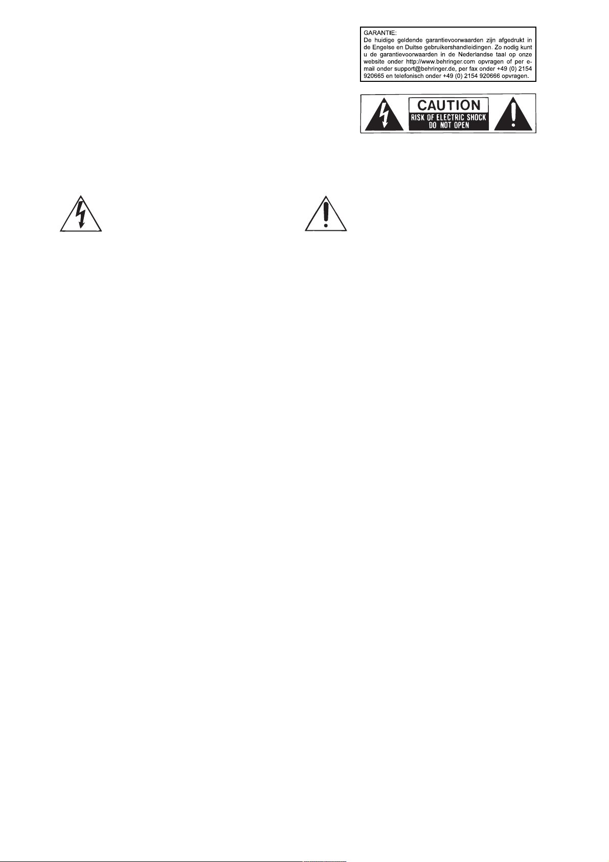 schriftelijke toestemming van de firma BEHRINGER Spezielle Studiotechnik GmbH. BEHRINGER en VIRTUALIZER zijn geregistreerde handelsmerken.