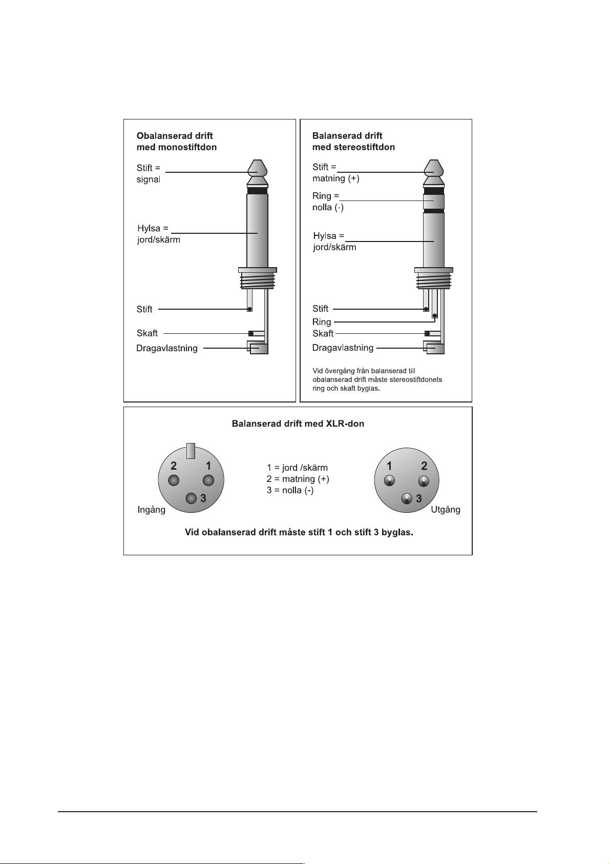 KopplingarXLR- och 6,3 mm stereo jack anslutning