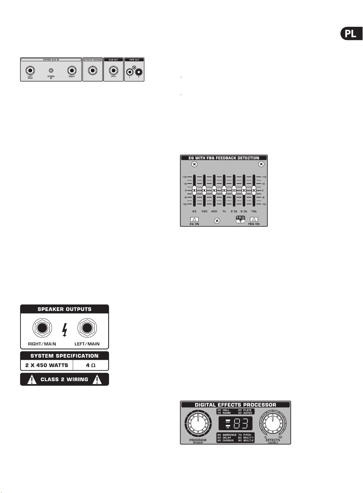 dokładne, 2-pasmowe korektory graczne oraz wskaźniki diodowe CLIP dające