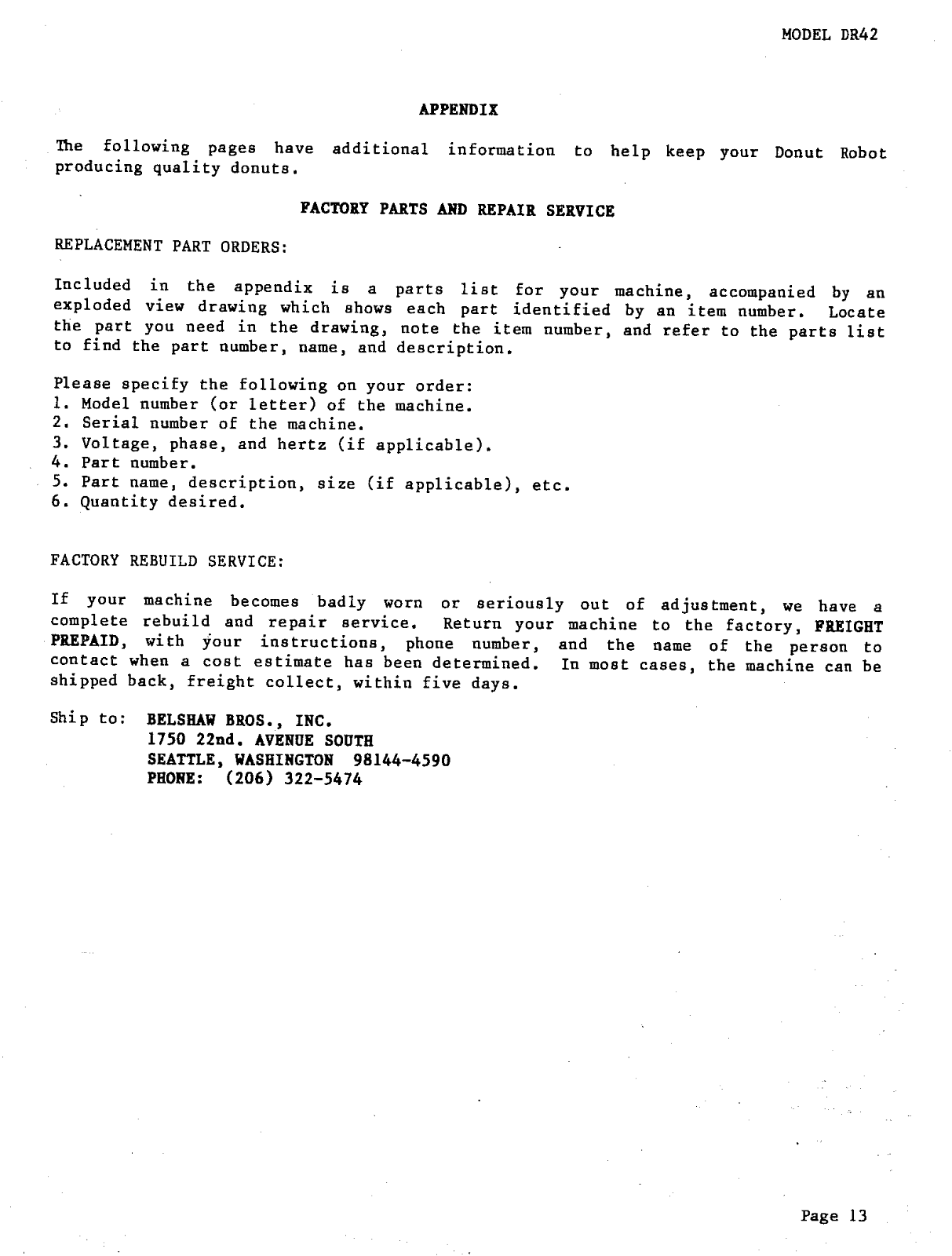 Belshaw 42 Installation Manual