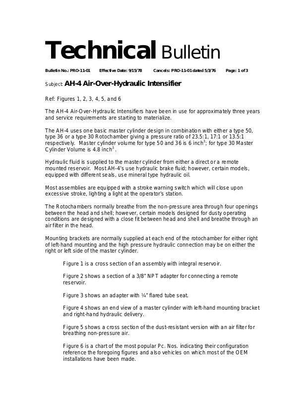 Subject: AH-4 Air-Over-Hydraulic Intensifier