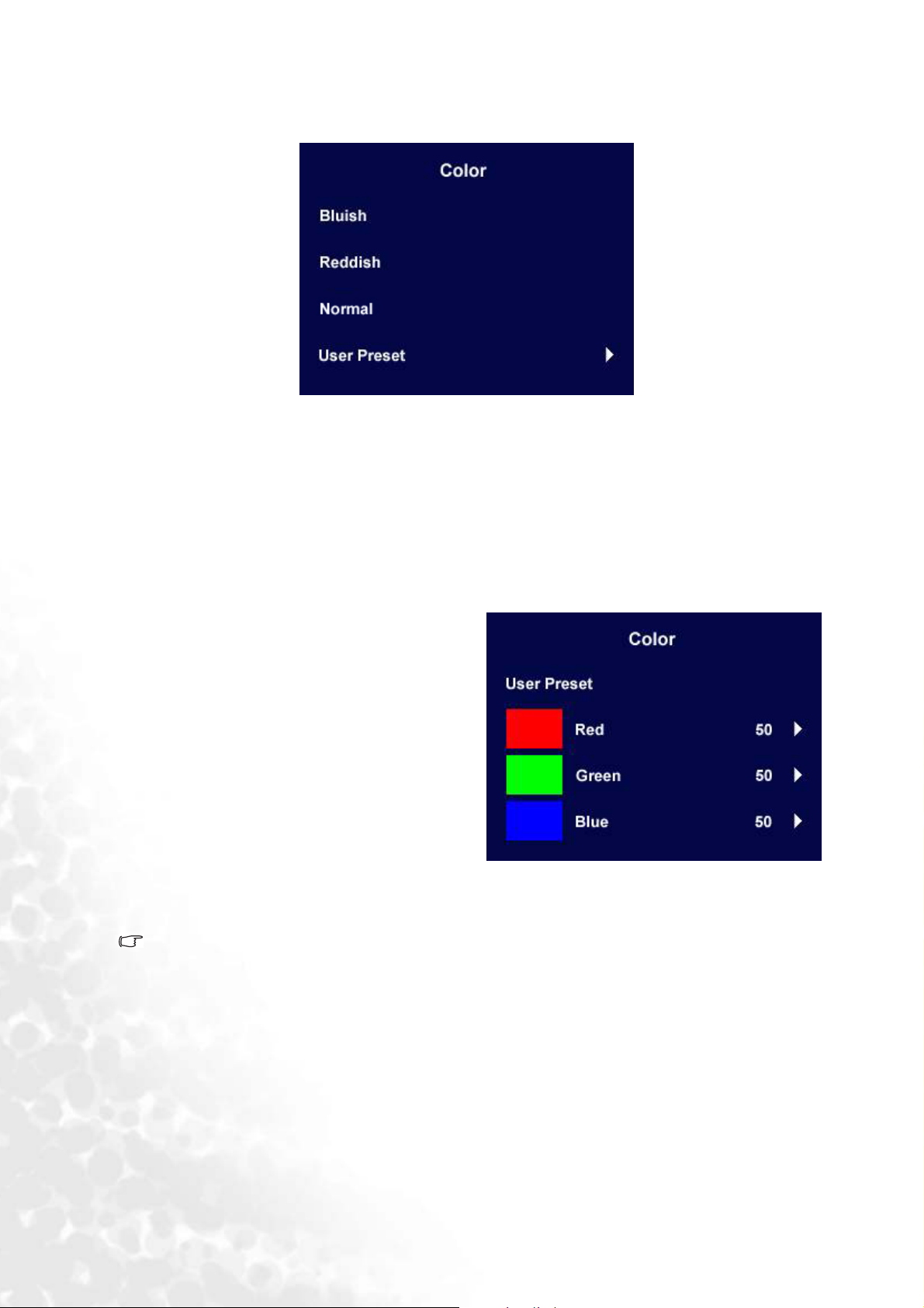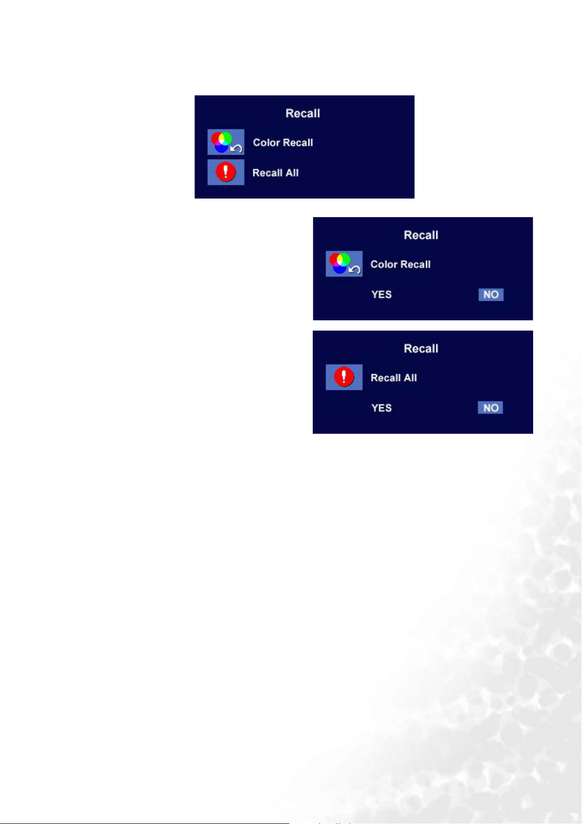 pod-menu “Color Recall” i wciśnij przycisk “Enter”, aby przywrócić ustawienia fabryczne. Jeśli