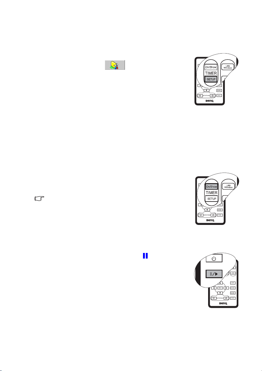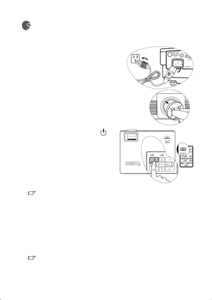 4. 投影機的燈泡亮起時,請務必打開