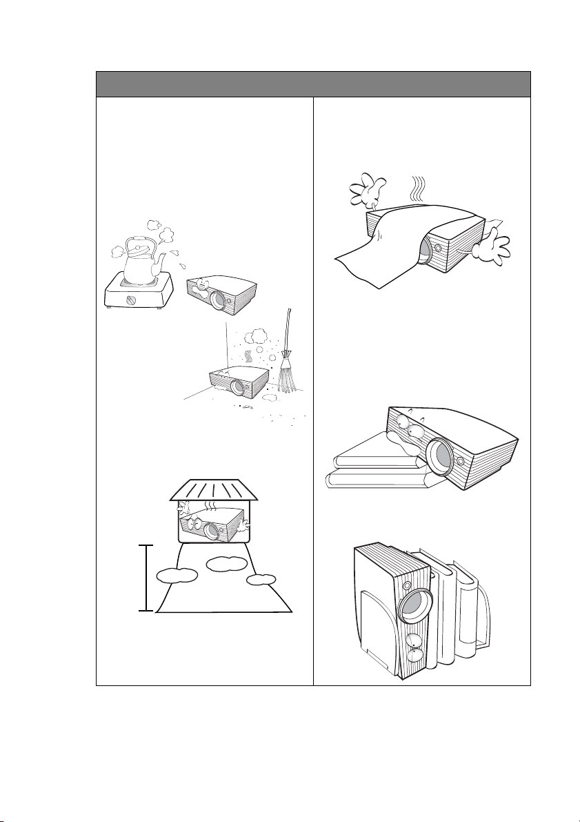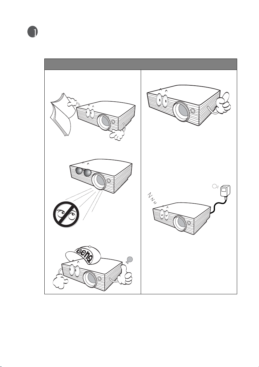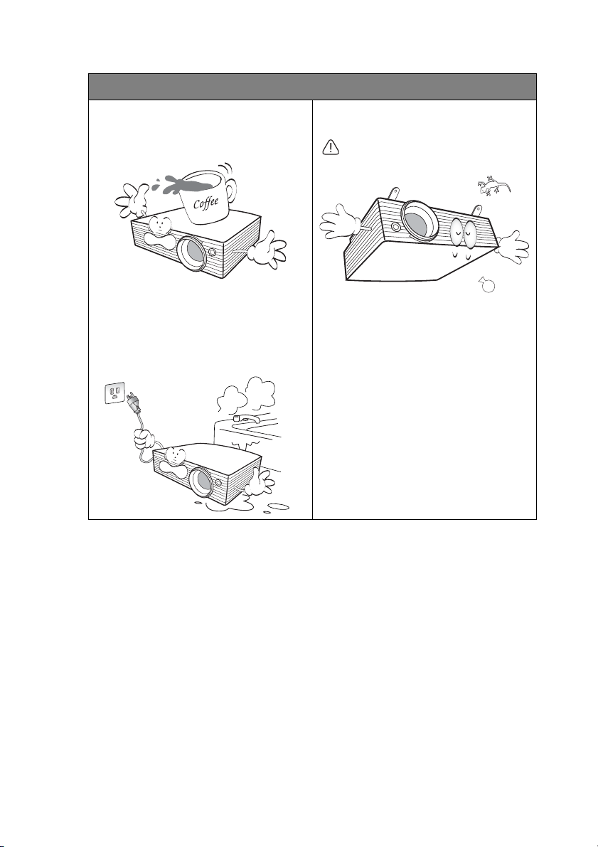 6. 當投影機在運作中時,請勿讓任何