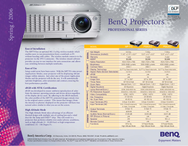 V.0506 ©2006 BenQ America Corp. All rights reserved. All trademarks and registered trademarks are the property of their respective holders.
