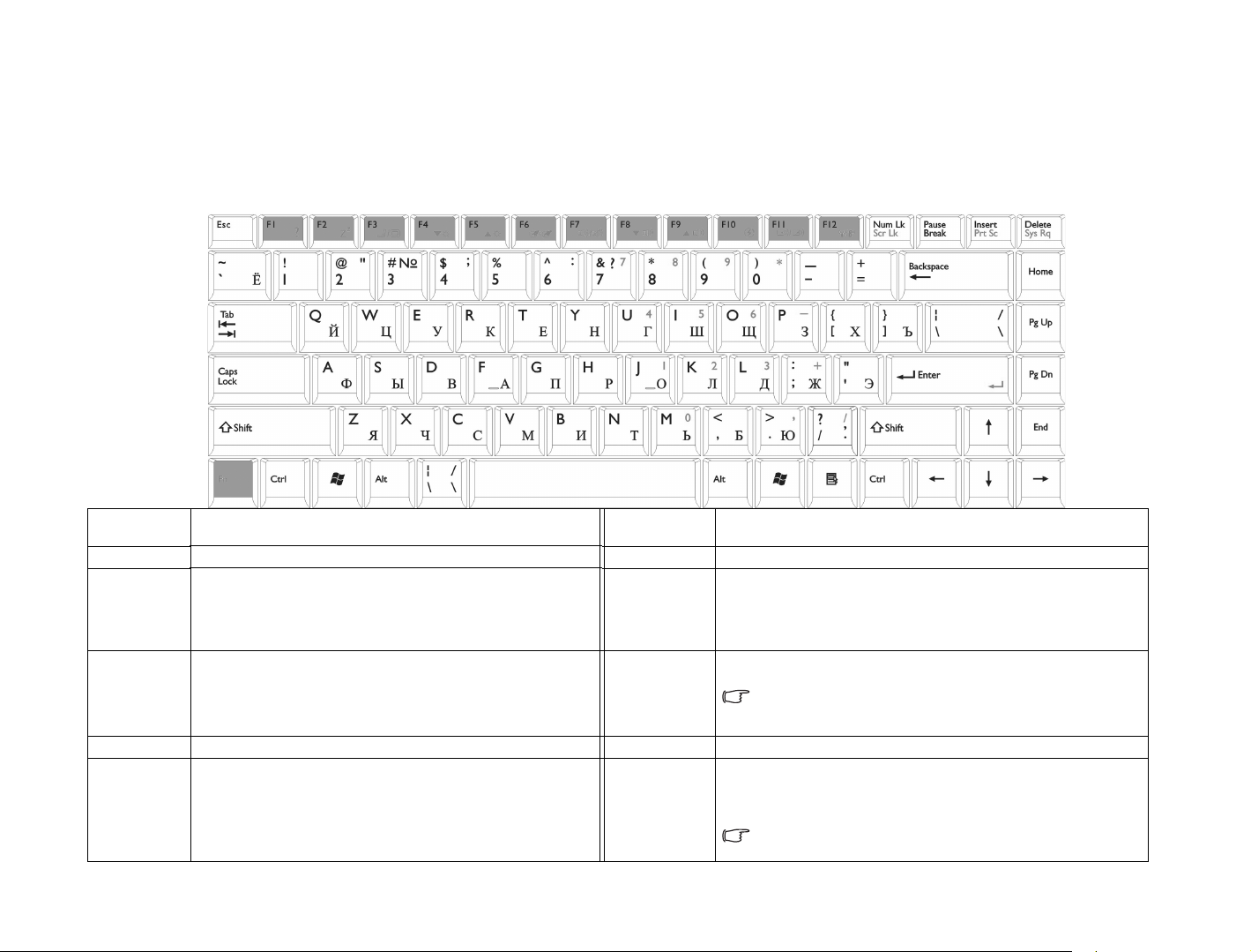 < > или [ ] Клавиши на