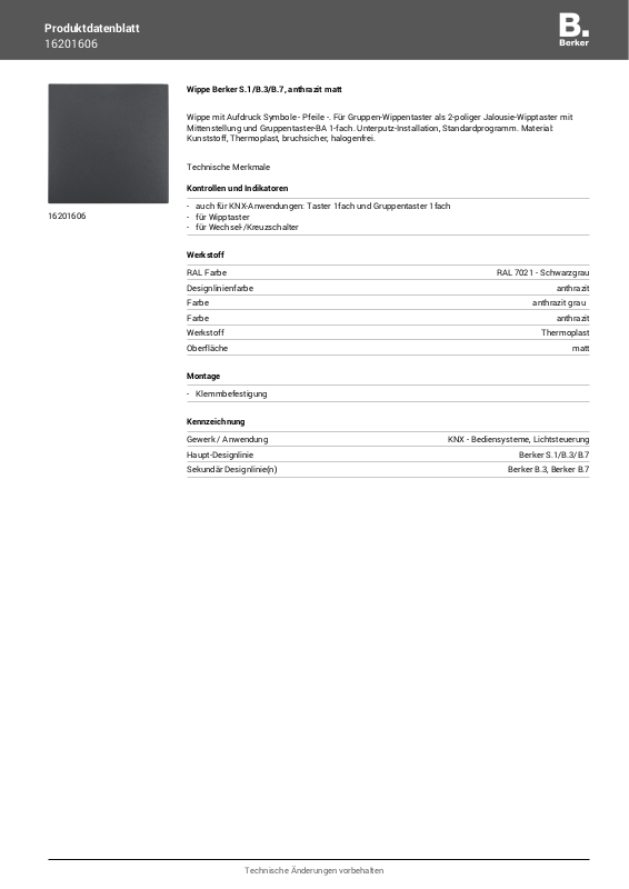 Wippe Berker S.1/B.3/B.7, anthrazit matt