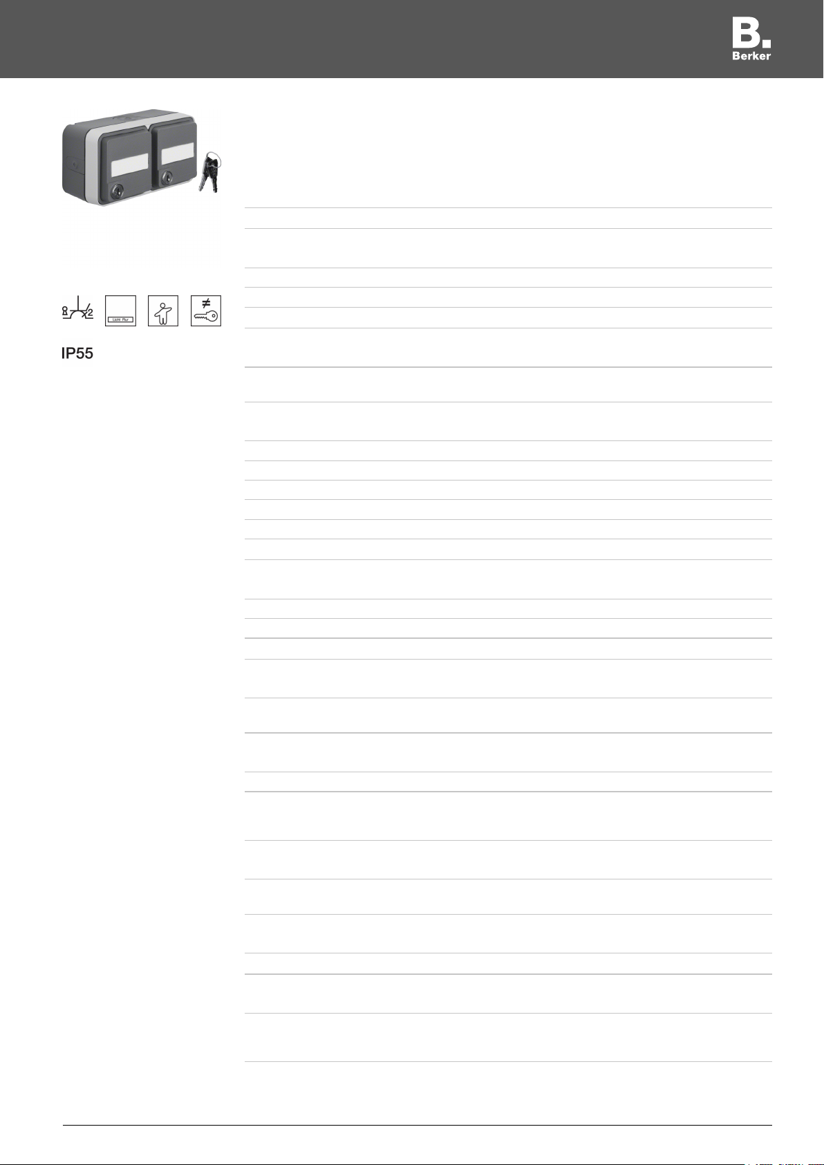 SCHUKO socket outlet 2gang horizontal with hinged cover surface-mounted with labelling field, Locks differing lockings, enhanced contact protection, Berker W.1