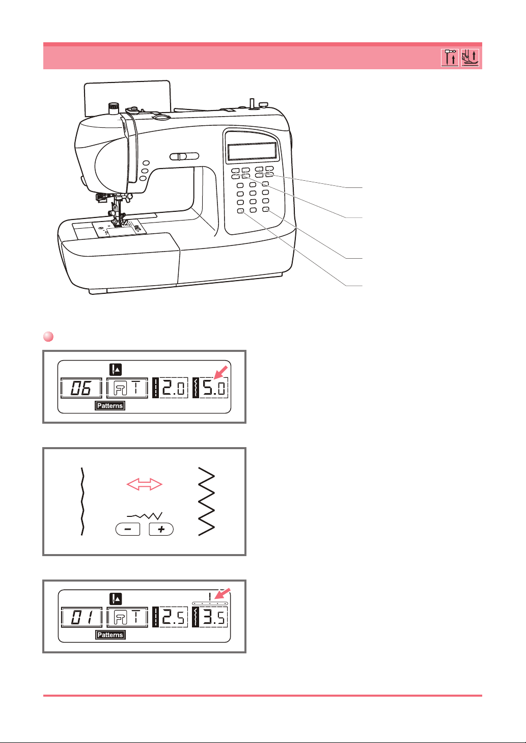 Press this button to adjust the width of the zigzag stitch.