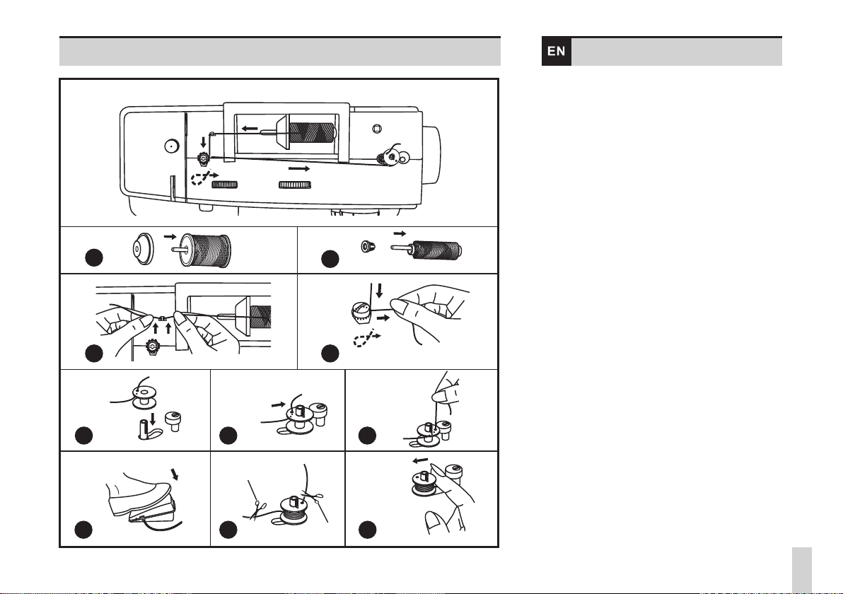 2. Thread the bobbin case as illustrated.
