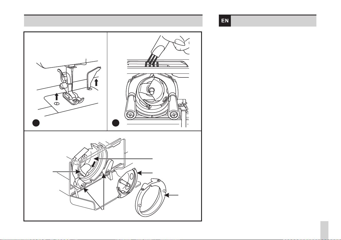 machine and the foot control free from accumulation of lint, dust, and loose cloth.