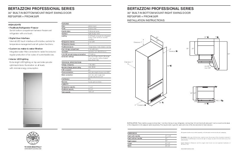 30” BUILT-IN BOTTOM MOUNT RIGHT SWING DOOR