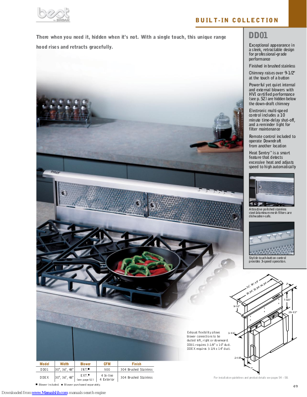 Model Width Blower CFM Finish