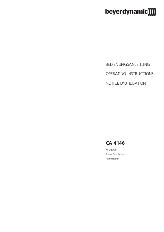 Thank you for selecting the CA 4146 power supply unit from beyerdynamic. Please take some time to read through this manual carefully