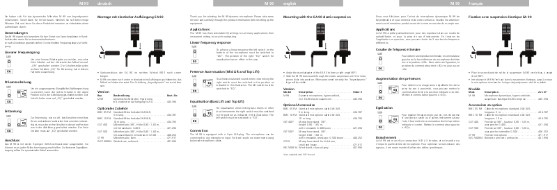 Thank you for selecting the M 99 dynamic microphone. Please take some