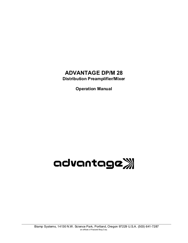 eight outputs. In this mode the DP/M 28 functions as a combination mixer/distribution preamplifier, with 2 inputs and eight outputs. When
