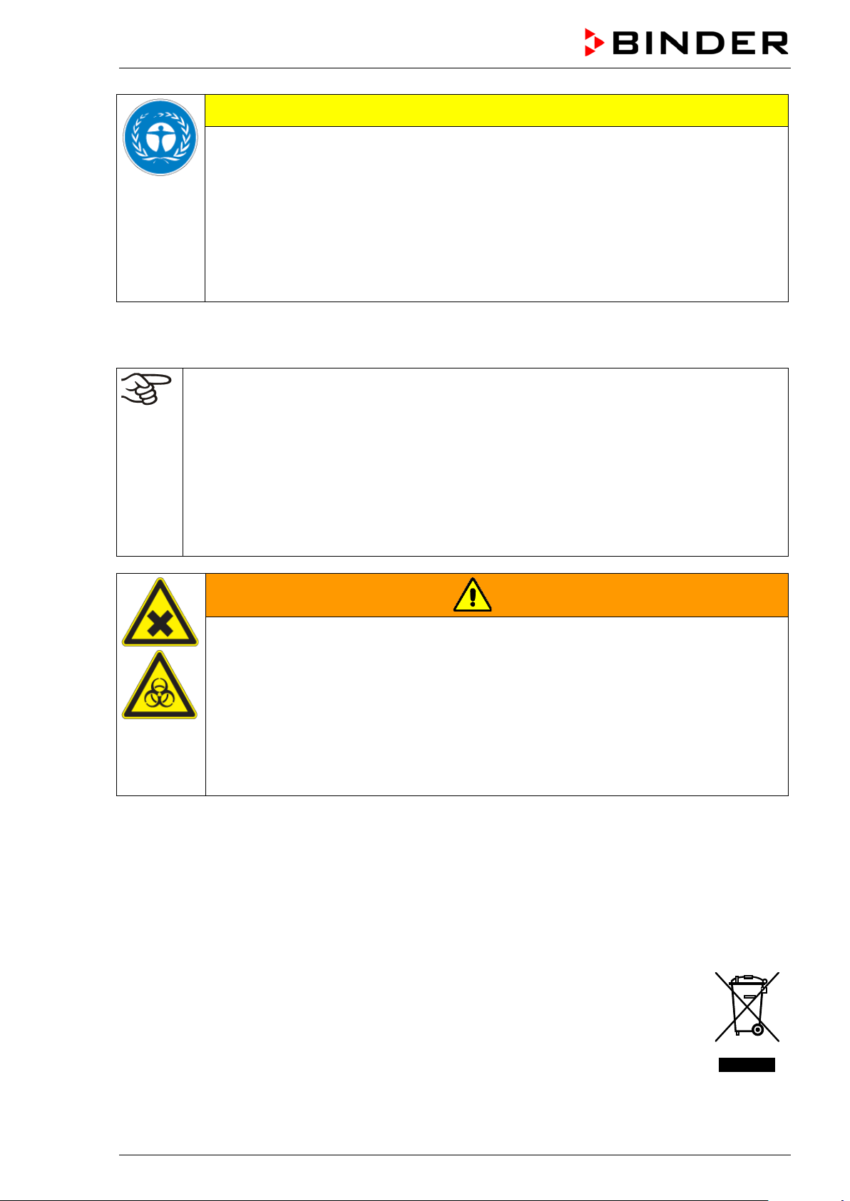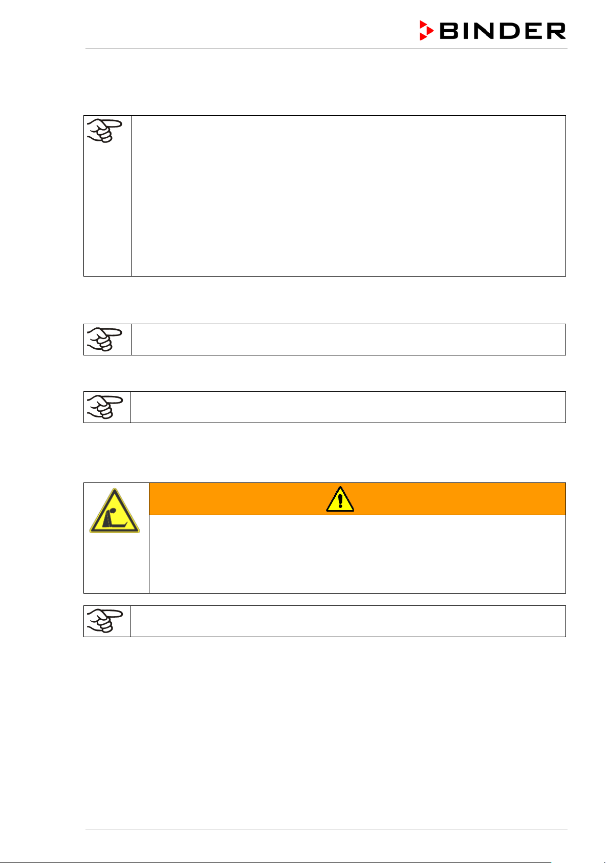 use and safety during operation a nd maintena nce. In no e vent shall BIN DER be held l iable for an y damages, direct or incidental arising out of or related to the use of this manual.