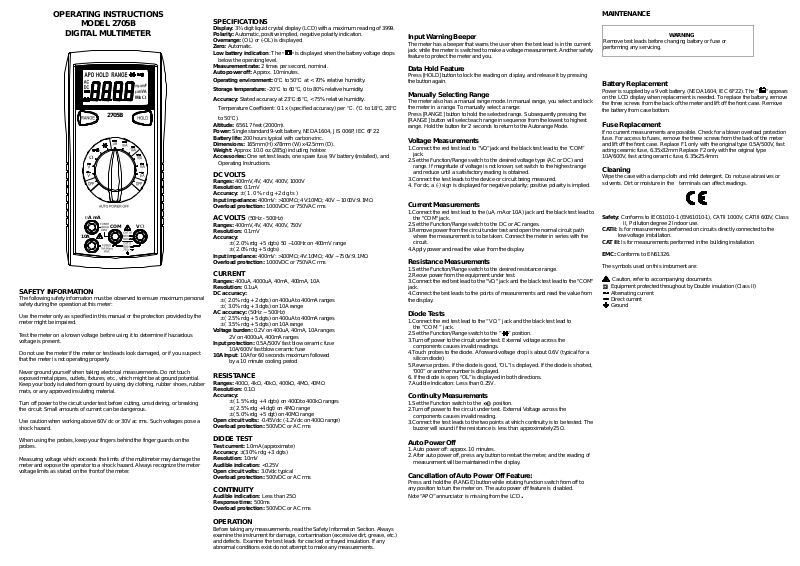 Display: 3¾ digitliquid crystaldisplay (LCD)with a maximum reading of 3999.