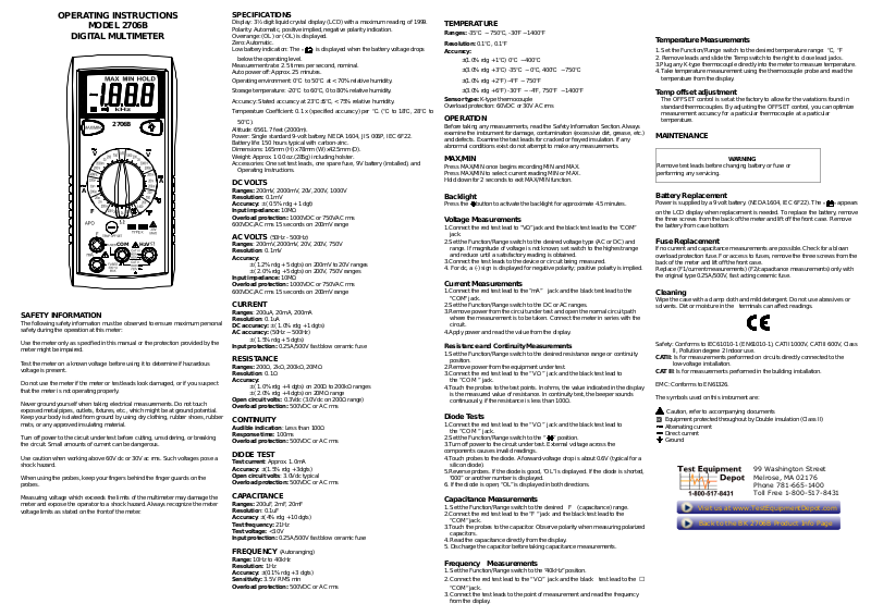 Accessories: One set test leads,onespare fuse, 9V battery (installed),and