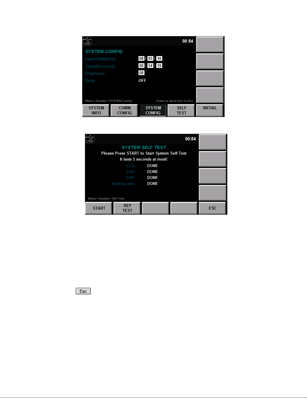 4. Press the “START” so key to initialize system seings. Press the ESC to exit.