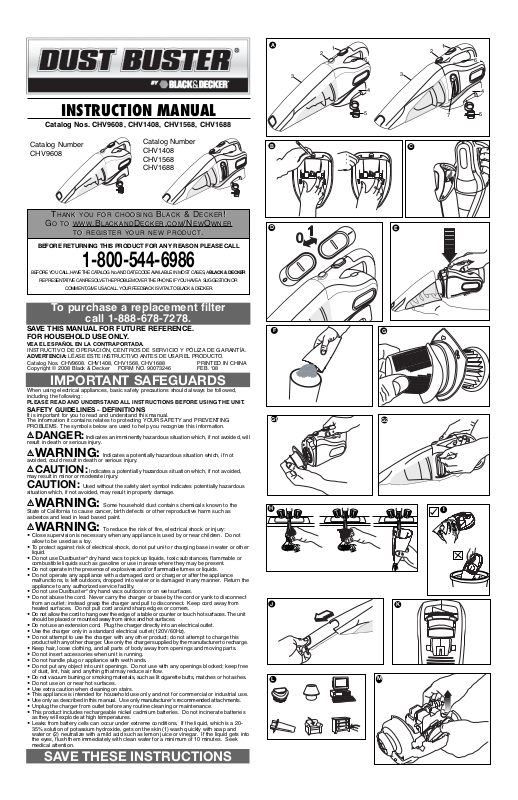 • No use las aspiradoras Dustbuster® para limpieza seca en superficies mojadas o a la