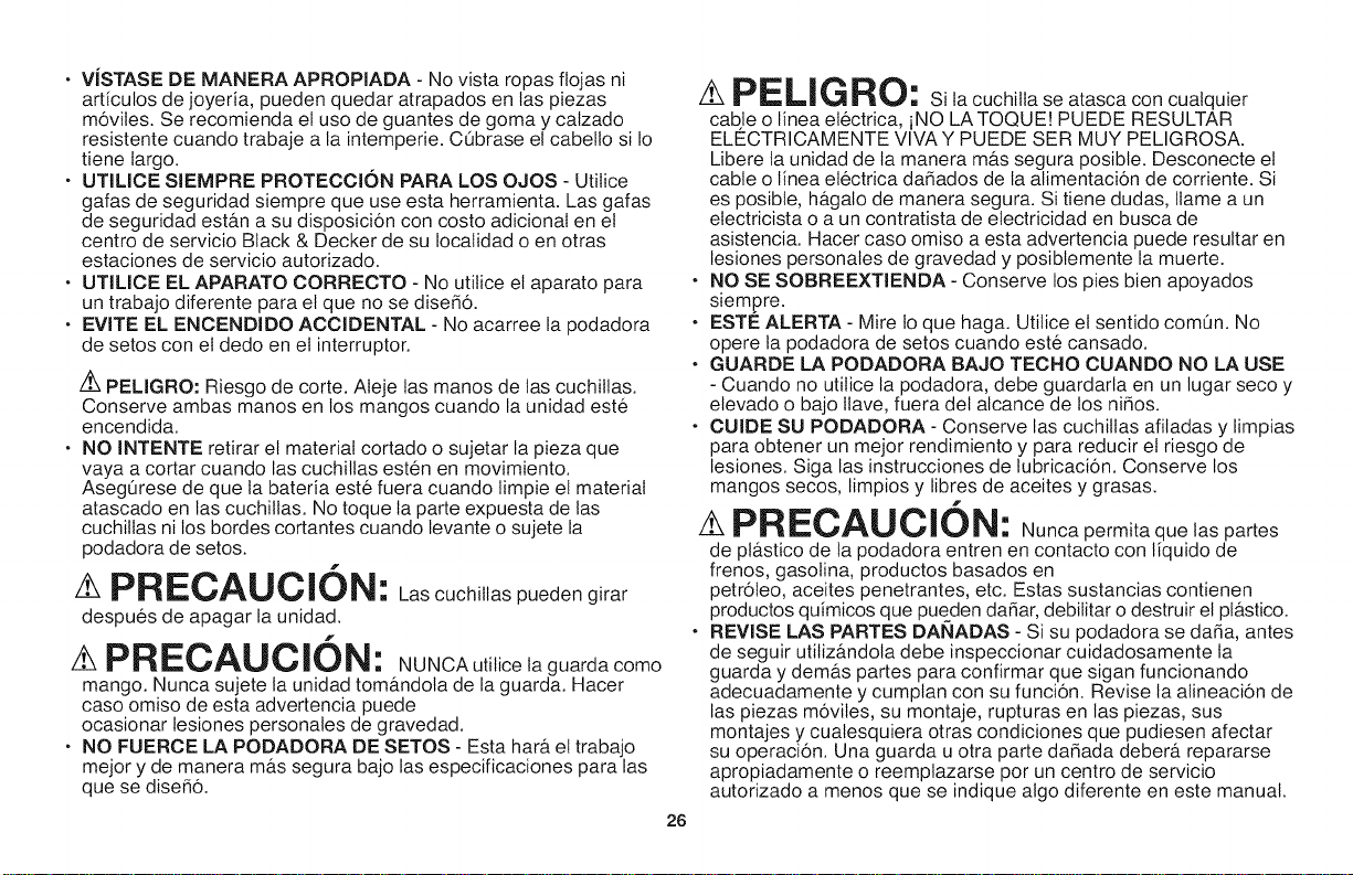 • DO NOT USE OR CHARGE battery operated hedge trimmer in