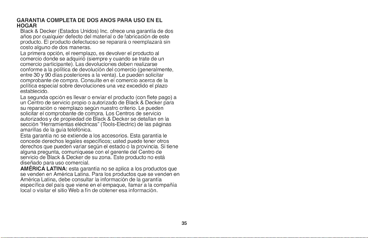 • GARANTiA BLACK & DECKER • BLACK & DECKER WARRANTY