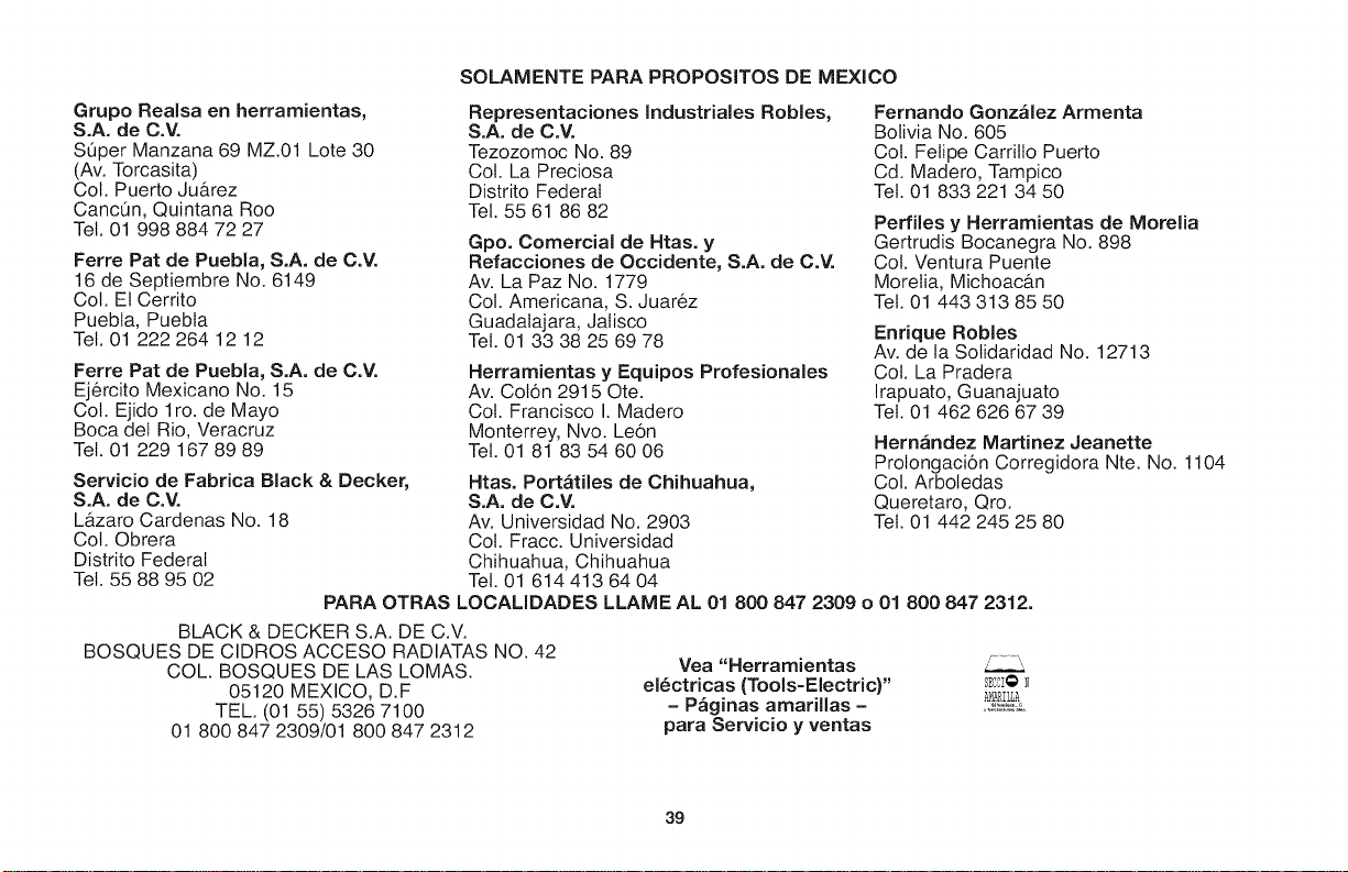 PARA OTRAS LOCALIIDADES LLAME AL 01 800 847 2309 o 01 800 847 2312.