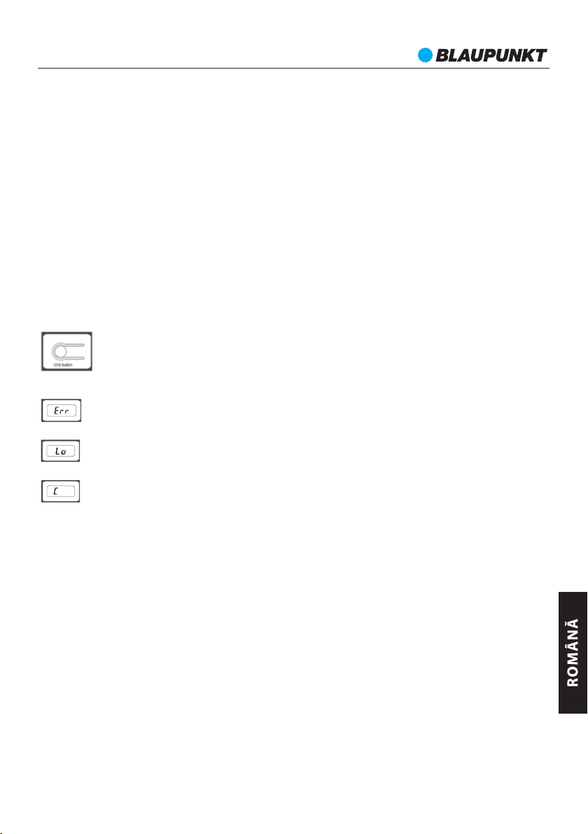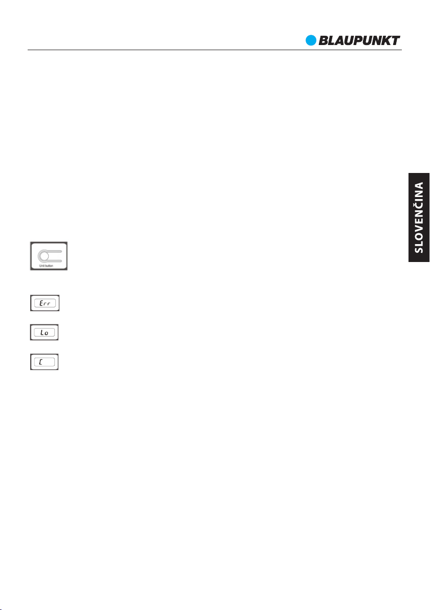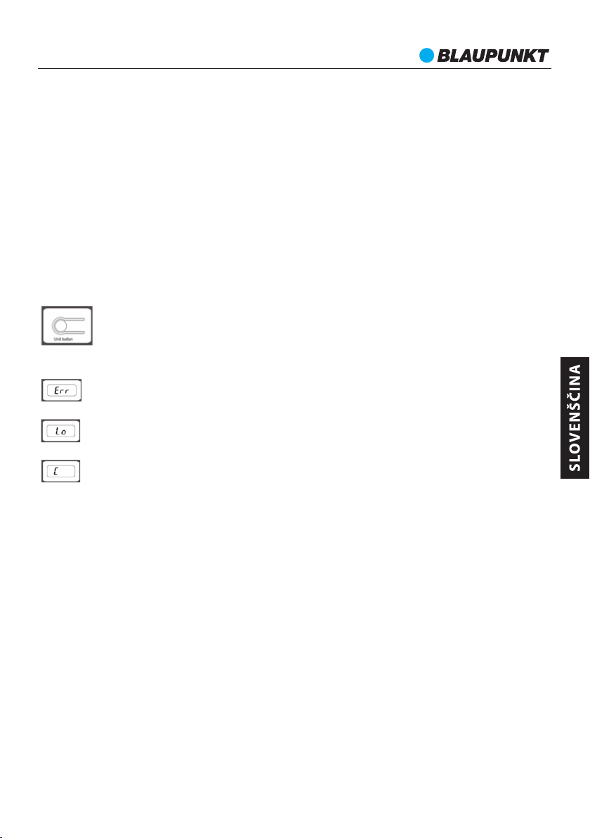 Lo – Žemas baterijų įkrovimo lygis, būtina pakeisti baterijas.