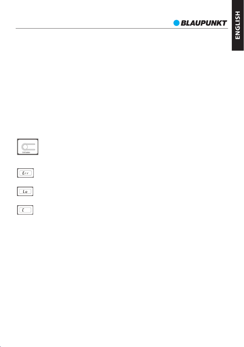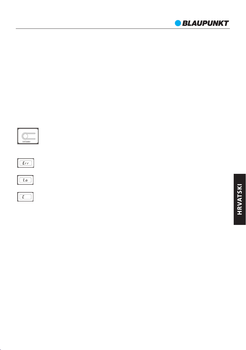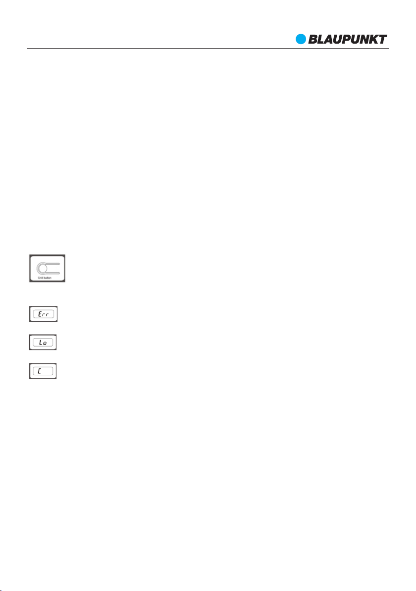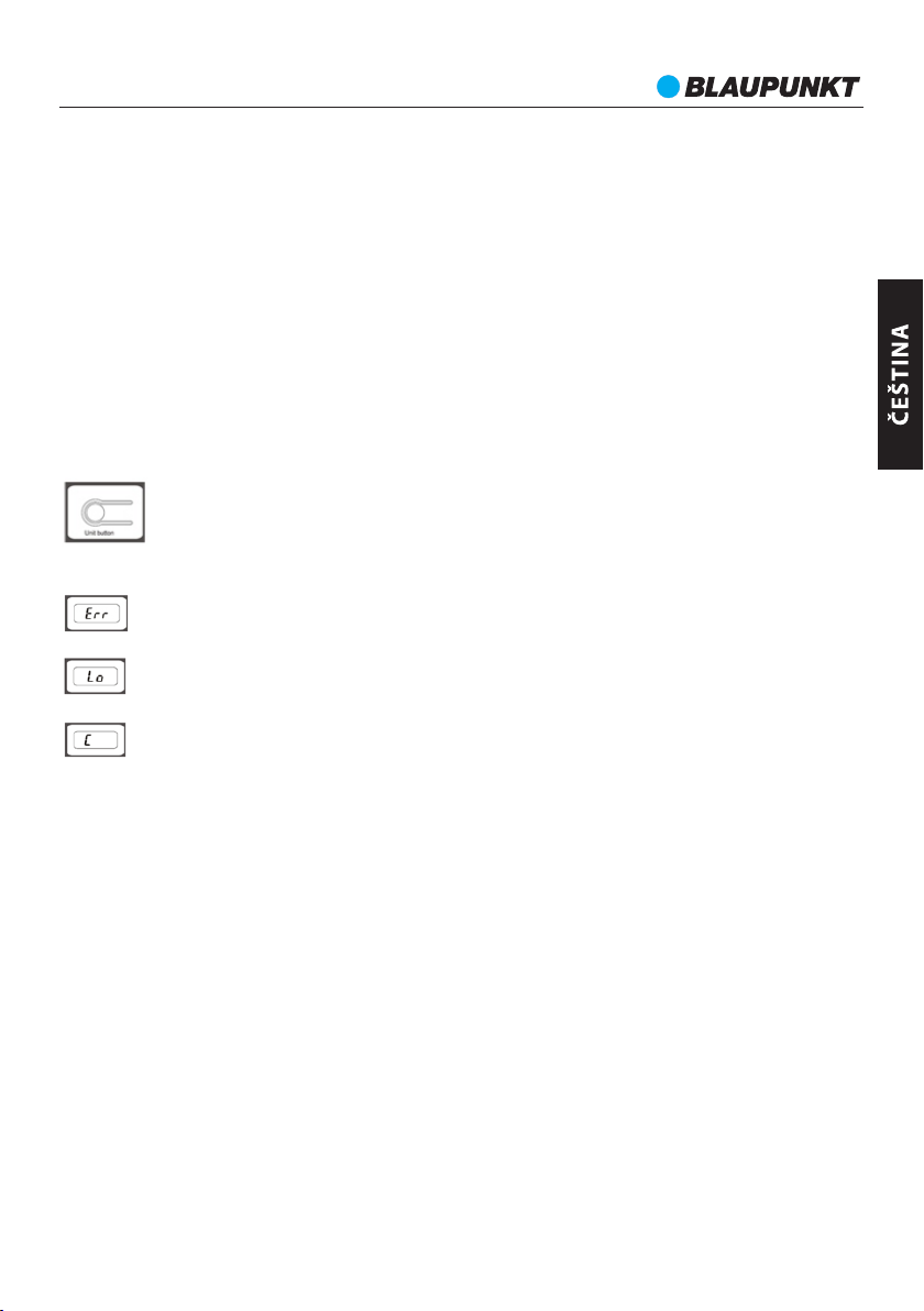Lo – Žemas baterijų įkrovimo lygis, būtina pakeisti baterijas.