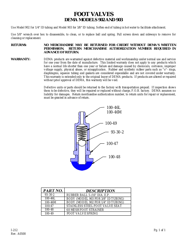 WARRANTY: DEMA pr oducts ar e warran ted again st defectiv e mat erial an d workman ship under n ormal use an d service