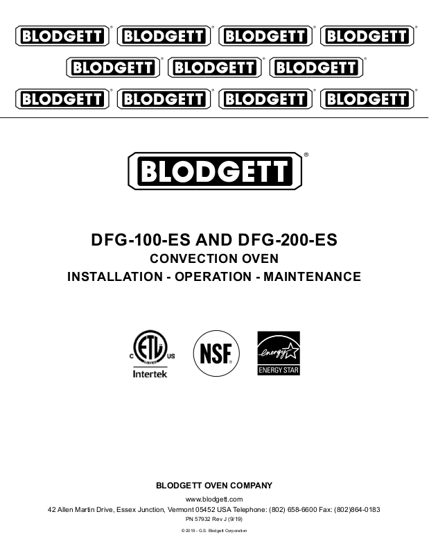 The Blodgett Oven Company cannot assume responsibility for loss or damage suered in transit. The carrier assumed full responsibility for delivery in good order when