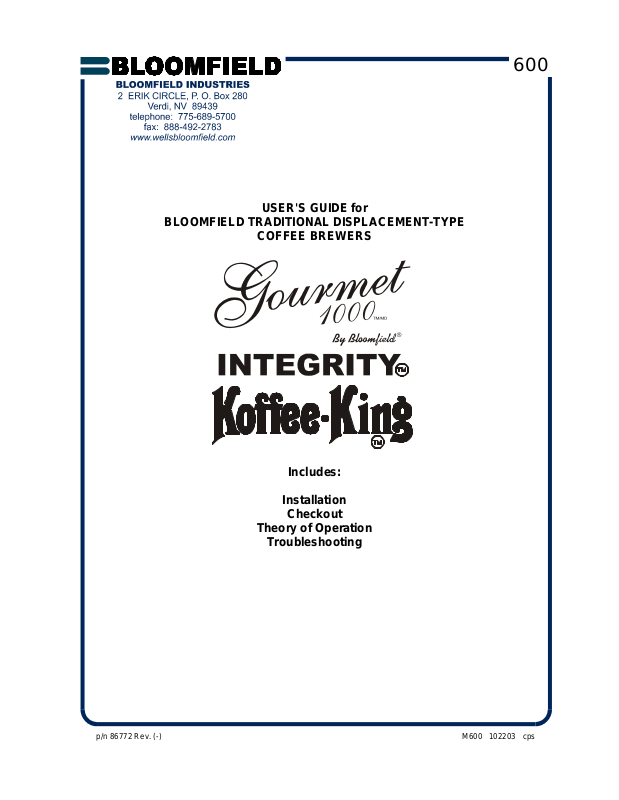 Bloomfield coffee brewers are intended exclusively for commercial use
