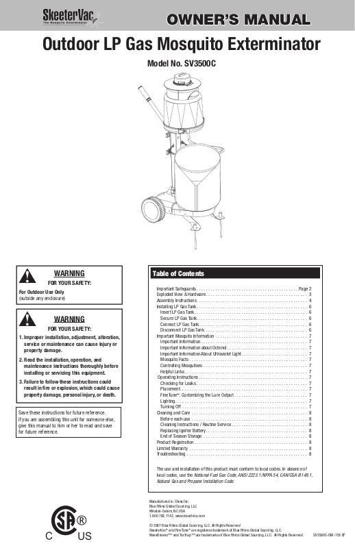 Outdoor LP Gas Mosquito Exterminator Model No. SV3500C