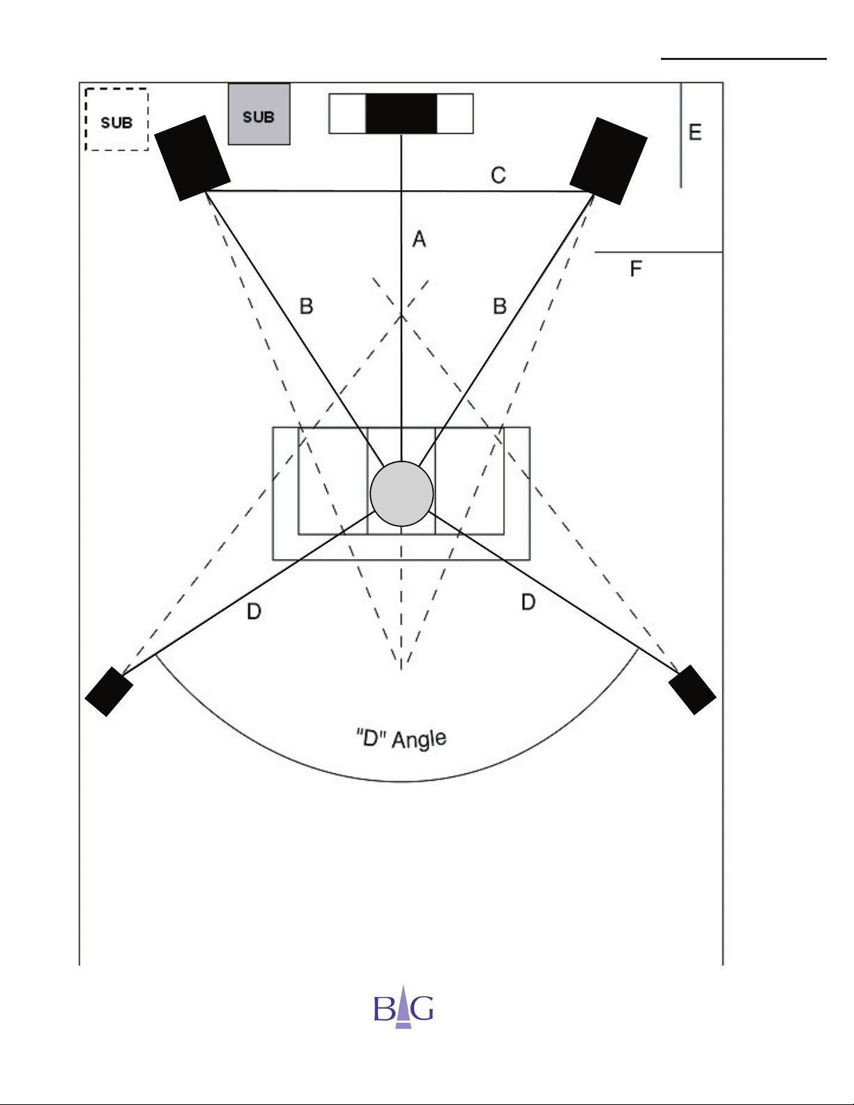 loudspeakers. This diagram is an overhead view of a typical listening room