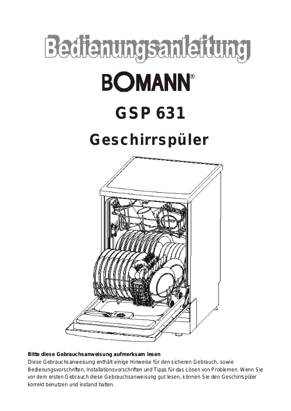 vor dem ersten Gebrauch diese Gebrauchsanweisung gut lesen, können Sie den Geschirrspüler