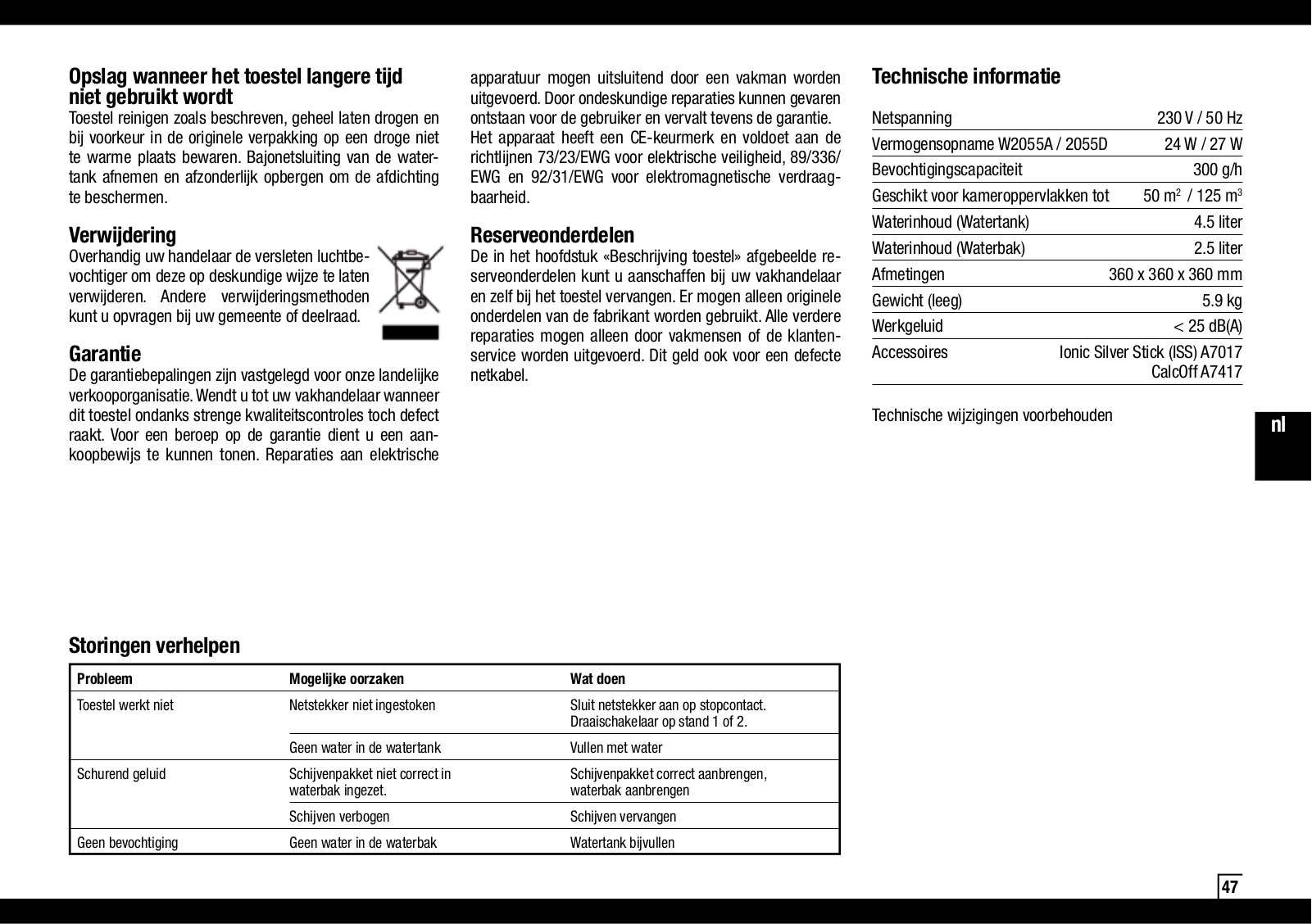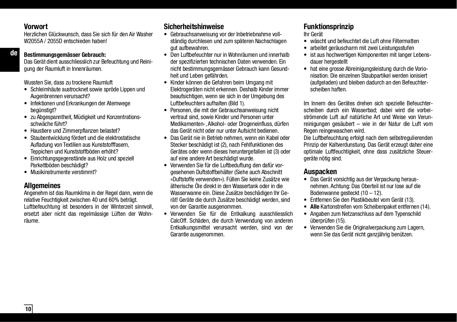 Boneco Air-O-Swiss W2055A User Manual [en, ru, de, es, fr, it, pl]
