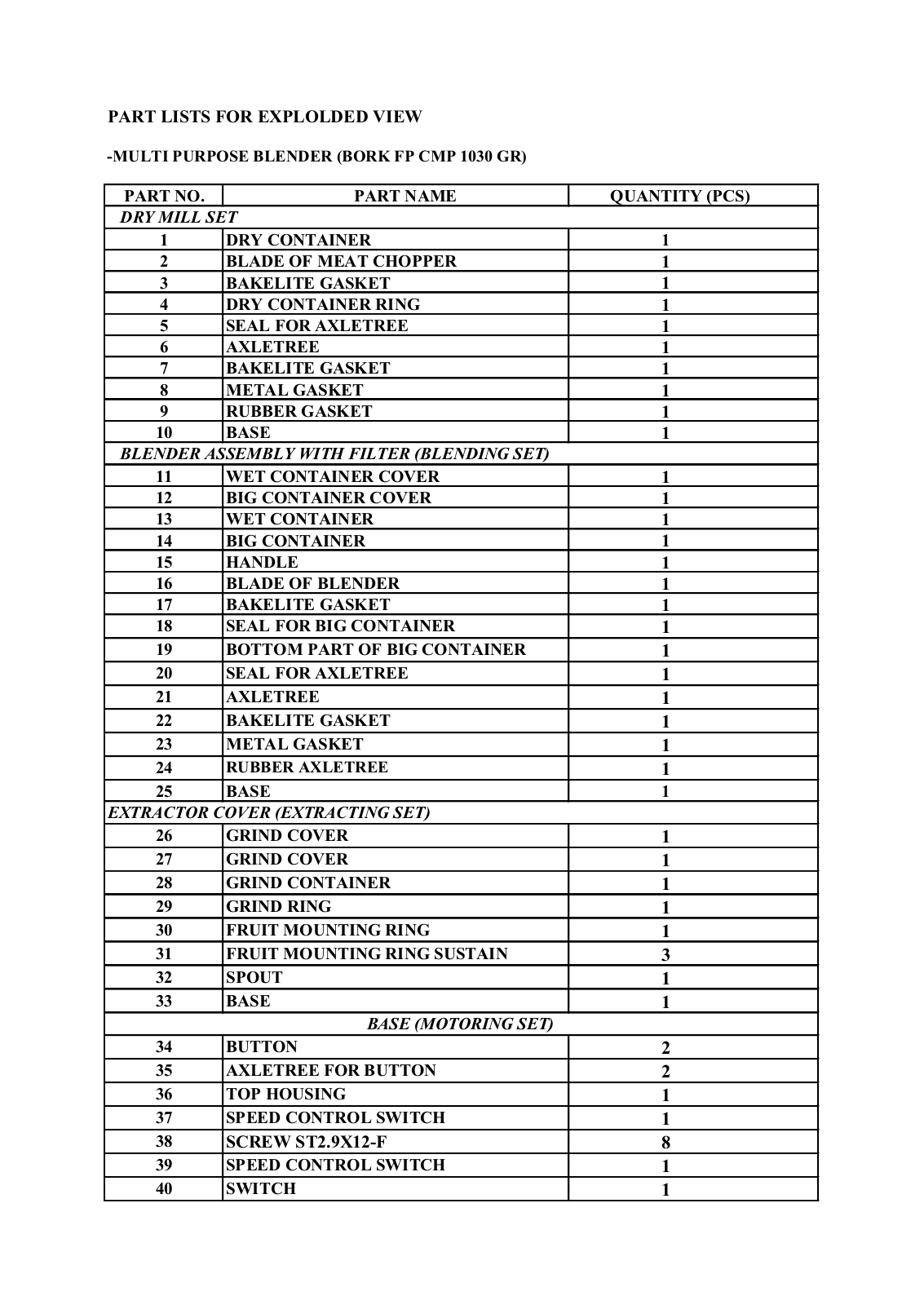 BORK FP CMP 1030 GR Explode view