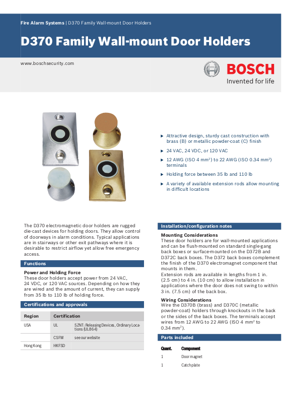Fire Alarm Systems | D370 Family Wall‑mount Door Holders