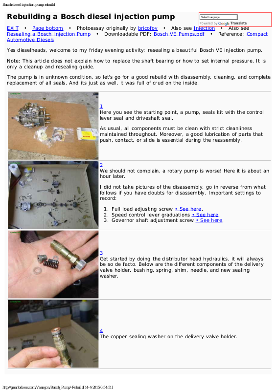 Resealing a Bosch Injection Pump • Downloadable PDF: Bosch VE Pumps.pdf • Reference: Compact